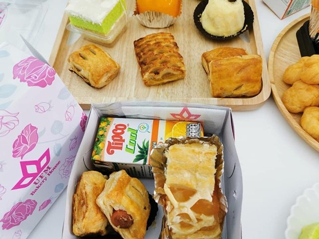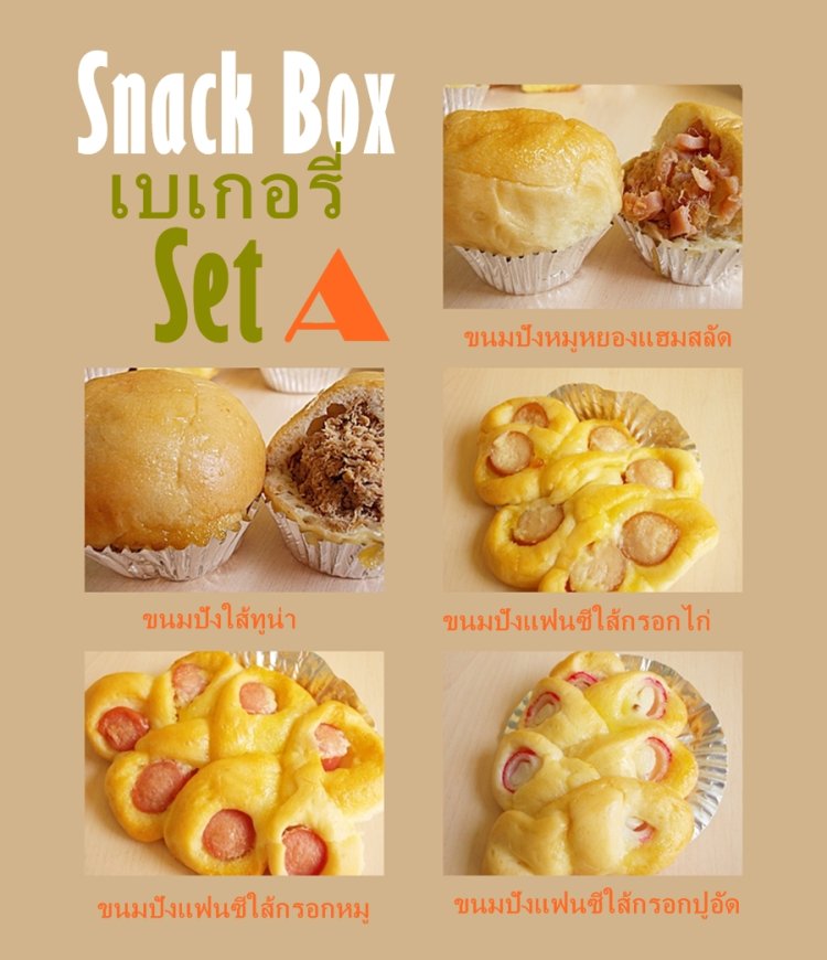 ชุดขนมเบรค เบเกอรี่ อร่อย พายสับปะรด ขนมปัง พายไส้กรอก เค้กส้ม