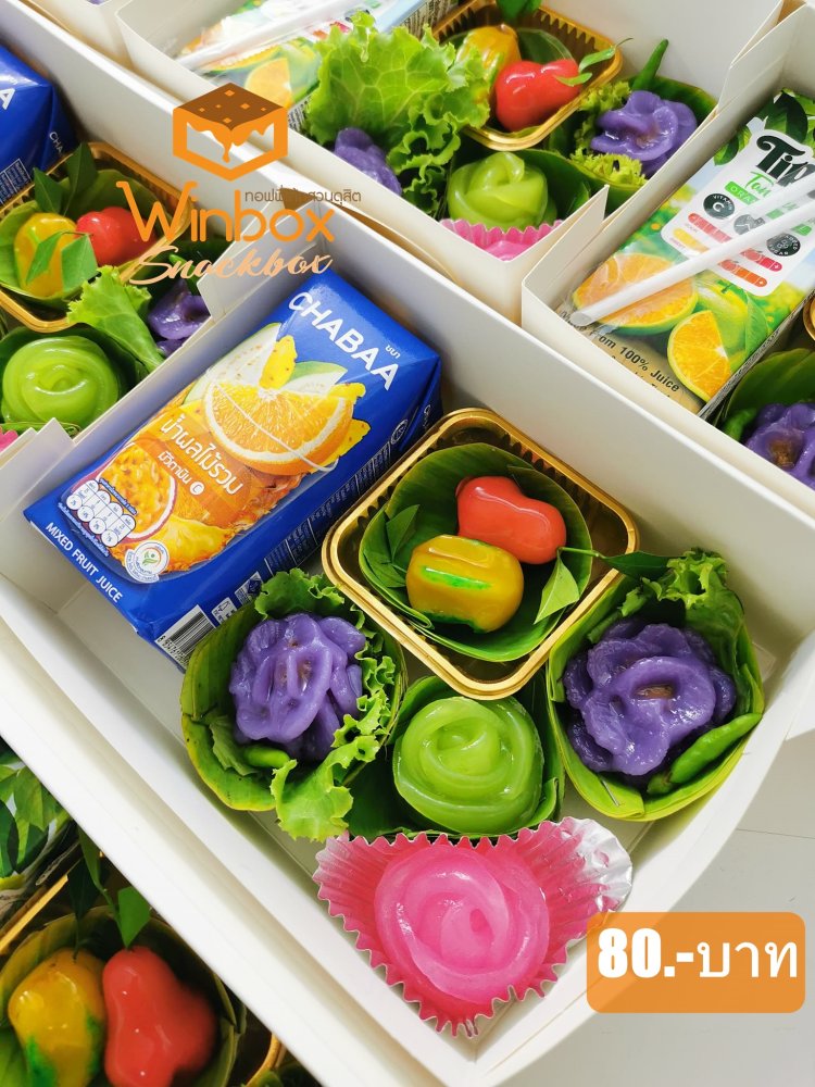 Winbox Snack box บริการจัด snack box ขนมจัดเบรค ชุดอาหารว่าง ชุดของว่าง ขนมอร่อยจากสวนดุสิต ด้วยขนมที่หลากหลาย สำหรับใช้ในงานประชุม สัมนา งานศพ งานพิธีและงานอีเว้นท์ พร้อมจัดส่งให้ทุกพื้นที่ในกรุงเทพ